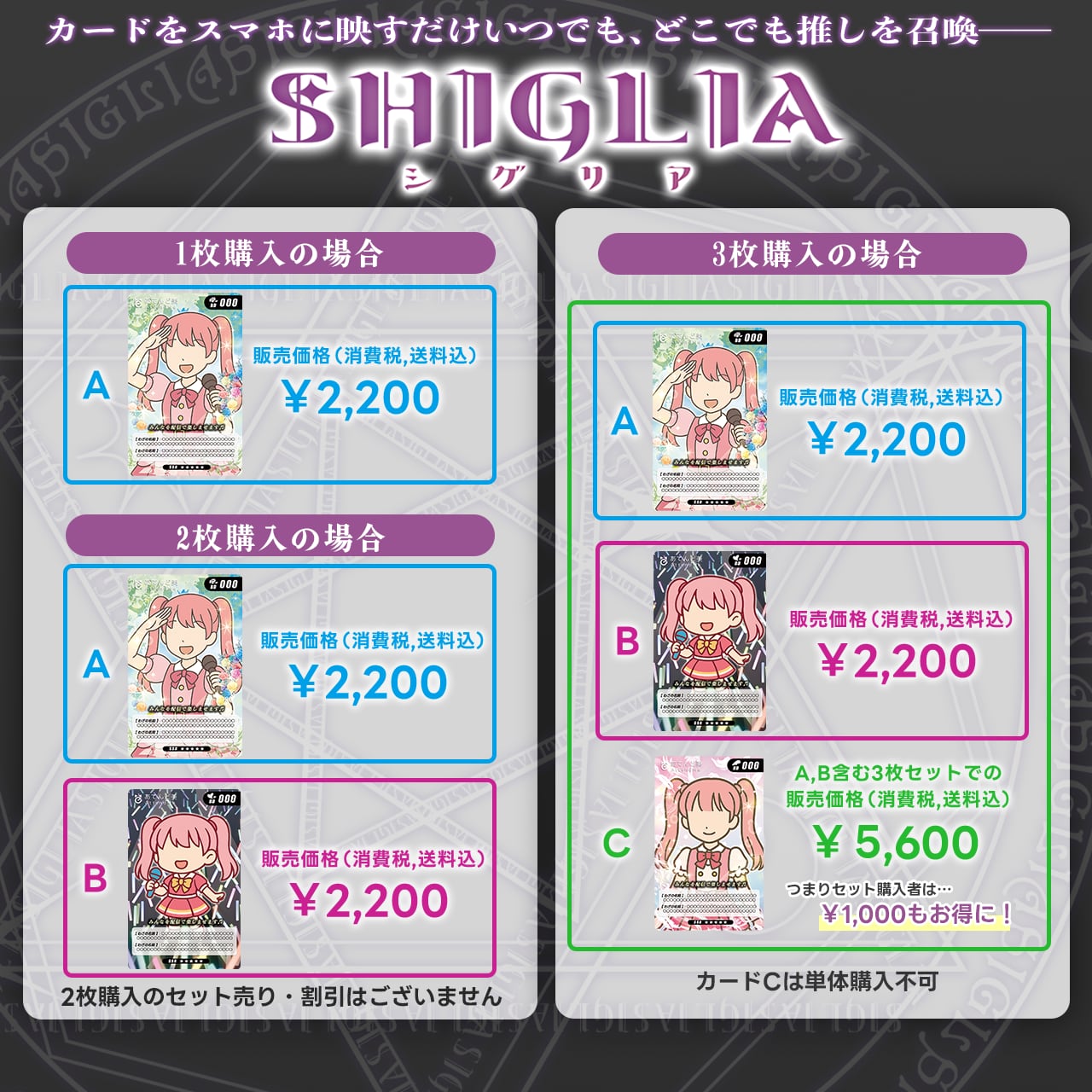 ※A・B単体購入可能。Cは3枚セット販売のみ